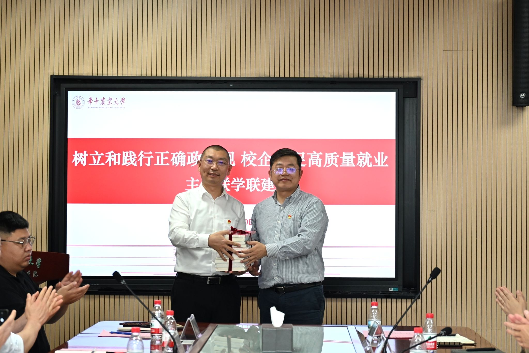 党委书记周向阳强调,高校要坚守立德树人根本任务,以正确政绩观引领办学育人,把促进毕业生高质量就业作为育人工作的重要环节,引导学生树立正确就业观、职业观,摒弃 “躺平”“慢就业” 等观念,主动到基层、到一线、到祖国最需要的地方建功立业。他希望以此次联学联建为契机,进一步深化校企协同育人,推动党建与人才培养、就业服务、产业发展深度融合。活动最后,双方举行赠书仪式,并合影留念。