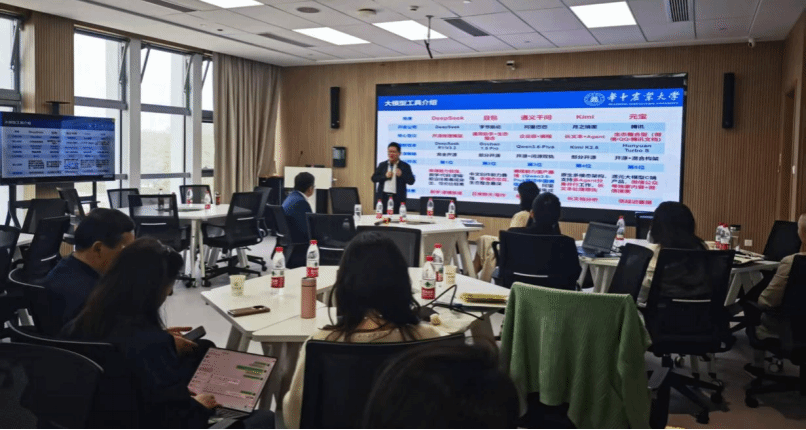 自由讨论环节,老师们围绕AI幻觉、数据安全、会议记录和英语学习等问题积极提问,吴老师分别给出了相应建议与演示。丁艳华在活动总结中表示,吴老师的分享既有前沿视野又有实操方法,希望老师们积极拥抱AI技术,将其作为提升教学与办公效率的有效工具,同时坚守教育本位,推动人机协同良性发展。