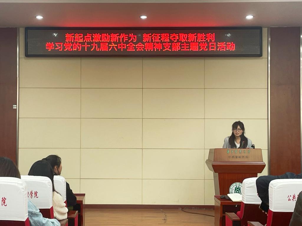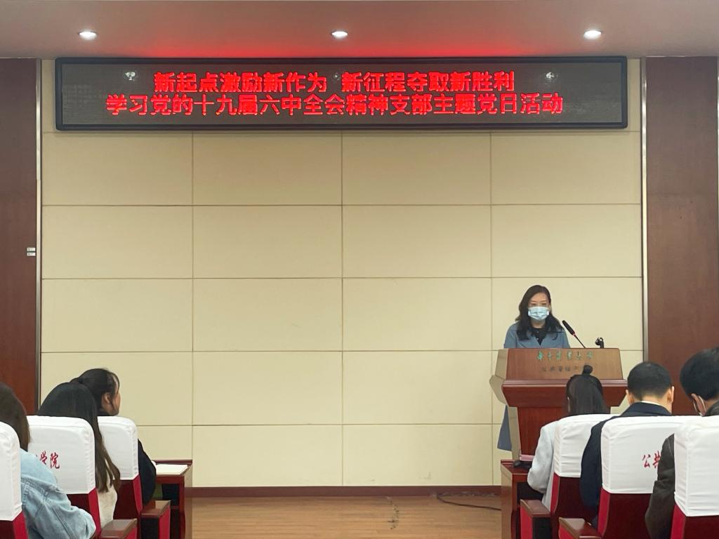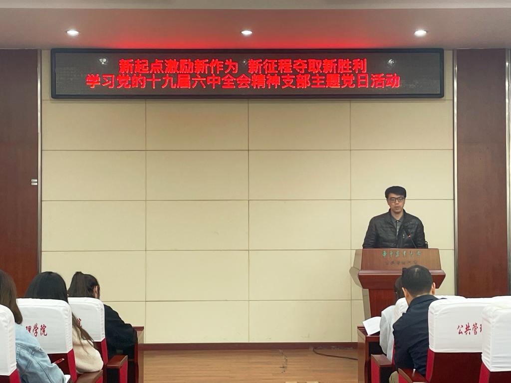 11月19日上午,学院于人文楼M115举行了“新起点激励新作为,新征程夺取新胜利”学习党的十九届六中全会精神支部主题党日活动。学院土地资源管理系教工党支部、本科生党支部和博士研究生党支部成员参加学习,会议由土地资源管理本科生党支部书记王晓诺主持。