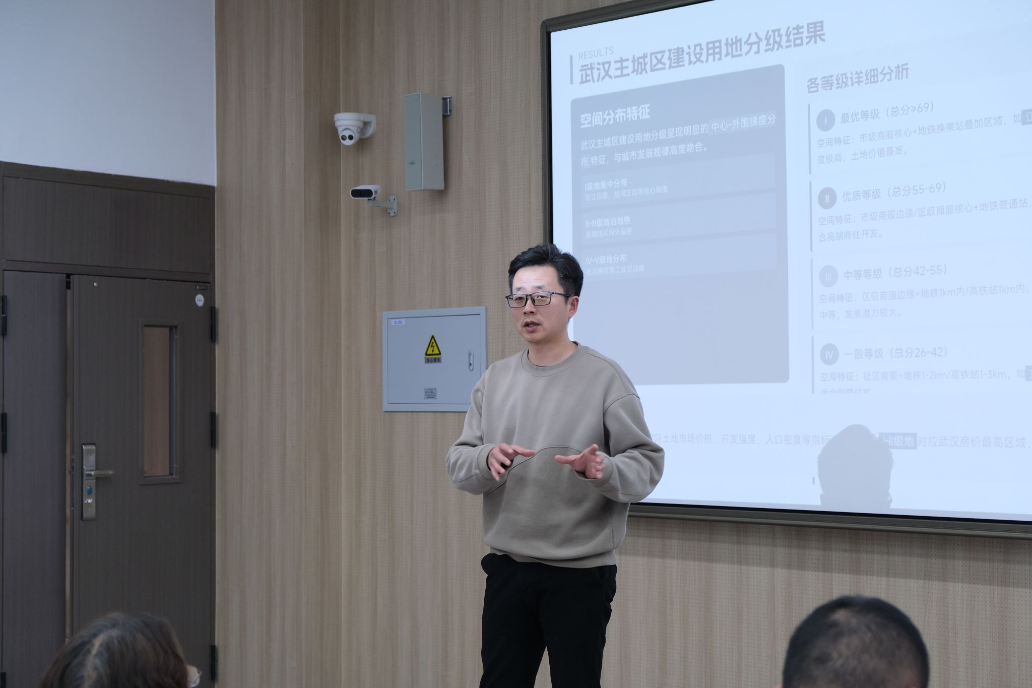 在比赛环节中,各参赛小组围绕城镇土地分等定级与农用地分等定级主题依次进行成果展示与汇报。十二个小组代表从技术路线构建、指标体系选取、模型方法应用及定级结果分析等方面进行了详细阐述,充分展现了扎实的专业基础和较强的实践能力。其中,第九组以青岛市商服用地为研究对象,构建包含6个维度、23项指标的定级体系,综合运用距离衰减模型、网络服务区模型及核密度估计方法,对商服用地进行等级划分。第七组聚焦杭州市主城区住宅用地分等定级,并结合《杭州市国土空间总体规划(2021—2035年)》中“三区三线”的划定成果,对定级结果进行了对比分析与拓展。第四组则以浙江省德清县为研究区,围绕林地质量定级展开研究,从自然资源定级视角对区域林地质量等级进行了系统评价。大赛共评选出一等奖一组,二等奖两组,三等奖三组。