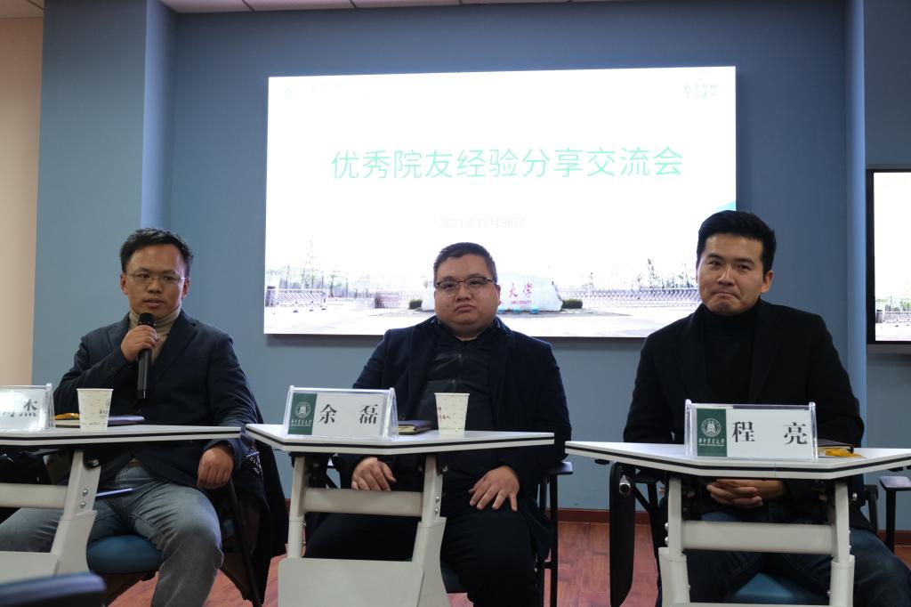 21级新生对专业的认知,更好地明确未来发展方向,了解专业发展前景,12月30日,学院邀请工程管理专业2008届优秀院友余磊、赵周杰、程亮于人文楼M221举办了经验分享交流会。工程管理系周义副教授、胡小芳副教授、焦云清老师和杨帆老师参加会议。分享会由周义副教授主持。