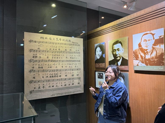 紧接着,大家前往校史馆,围绕学校历史沿革和发展成就进行了深入的参观学习。校史馆门柱上的楹联“凡民俊秀皆入学,天下大利必归农”给支部积极分子曹宏涛留下了深刻印象。他在活动心得中写道:“这副楹联体现了张之洞先生对农业教育的重视,也激励着华农人不断奋进、追求卓越。”在校史馆内,讲解员李昕琪从“百年薪火”与“世纪华章”两大展区出发,为大家详细讲解了学校跨越世纪的历史沿革、办学成果和突出成就。同学们认真倾听,收获颇丰。